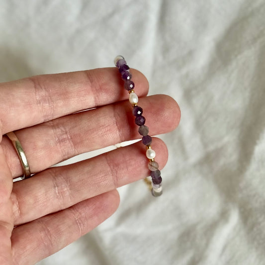 Náramek AMETYST z broušeného ametystu a sladkovodních perel