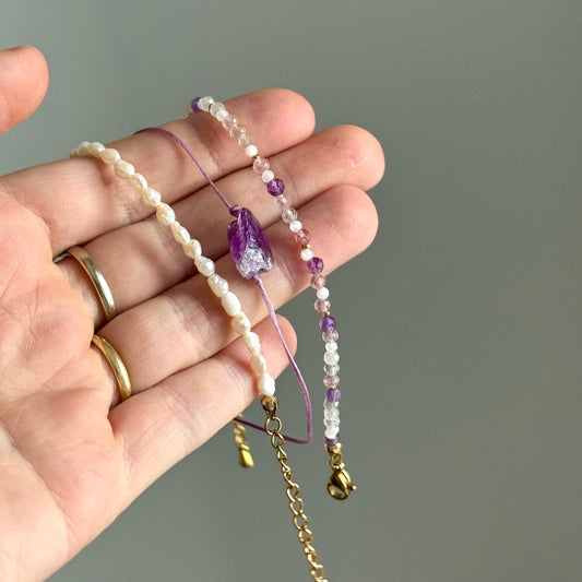 Sada náramků z PEREL a minerálních kamenů NA GUMIČCE