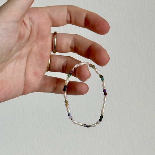 Náramek z PEREL a minerálních kamenů NA GUMIČCE