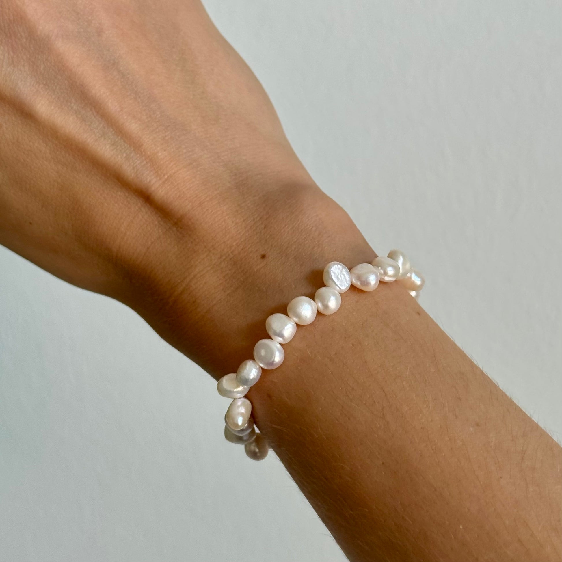 Hravý náramek z pravých říčních perel, které se liší tvarem i velikostí – přesně tak, jak je příroda stvořila. Nádherně rozverná výraznější kombinace.
