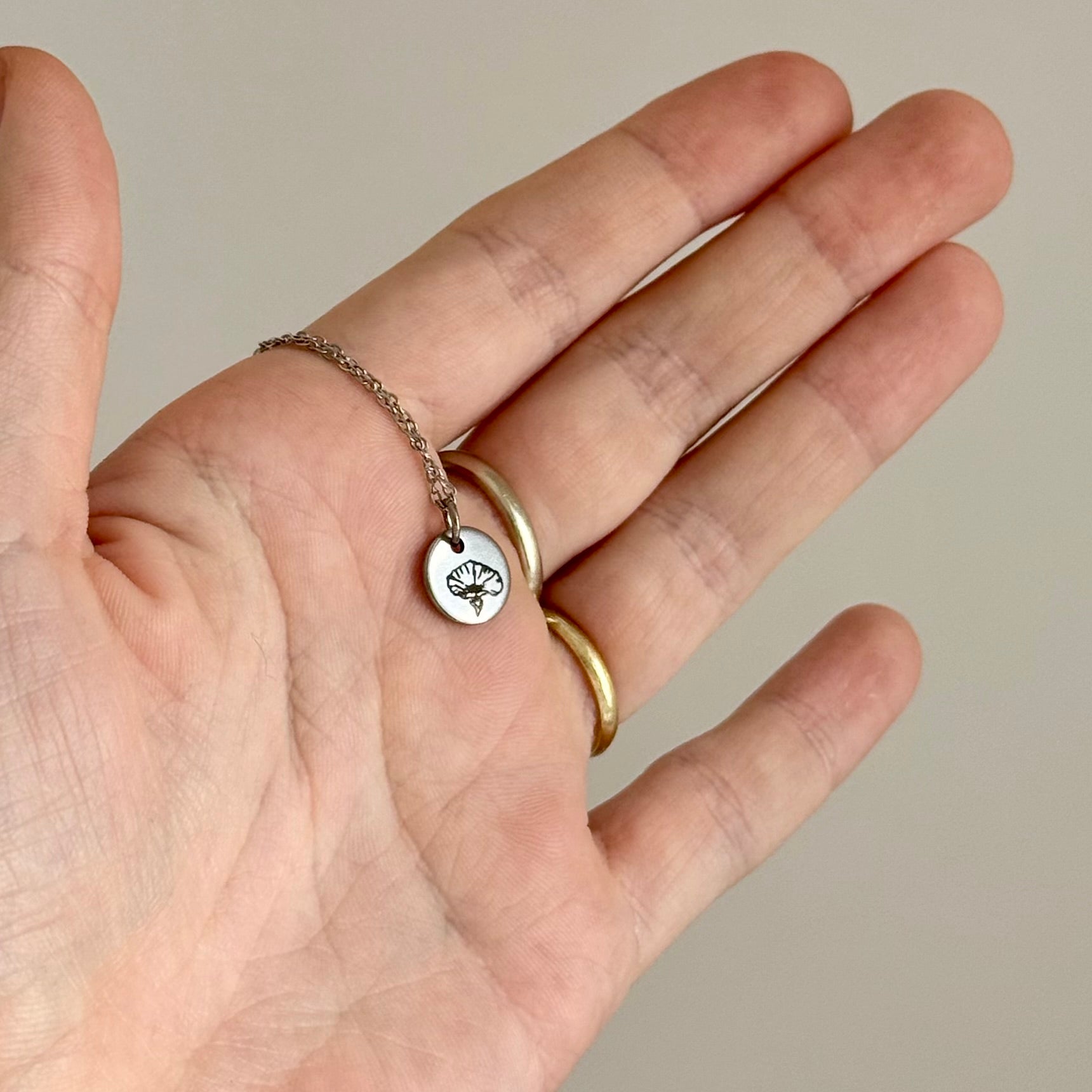 Na jemný řetízek lze zavěsit 1 až 5 medailonků, každý s jinou květinou, a vytvořit tak jedinečný šperk. Pro ještě větší symboliku můžeme na zadní stranu medailonku přidat iniciálu nebo číslici – třeba první písmeno jména nebo významné datum.