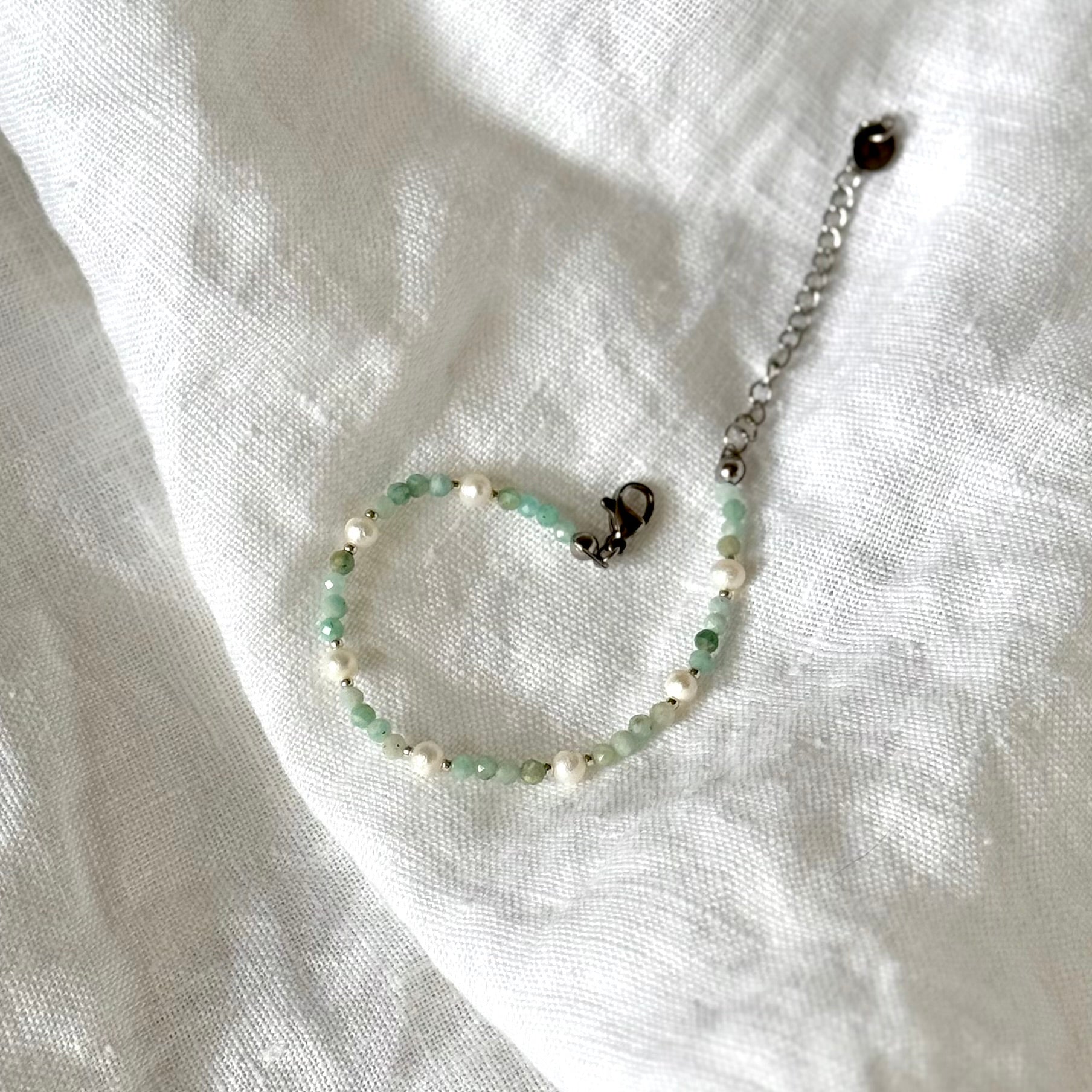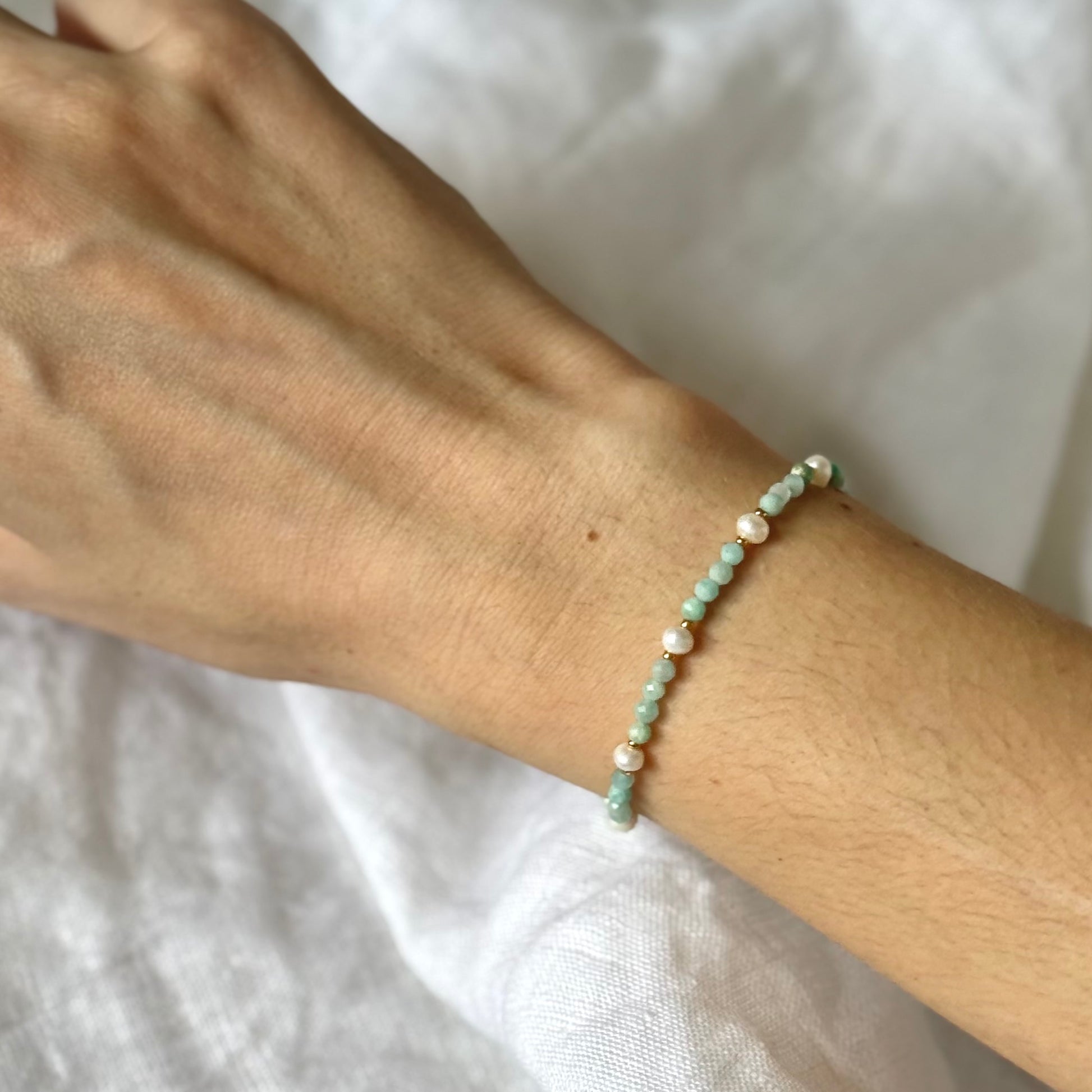 Náramek AMAZE z broušeného amazonitu a sladkovodních perel