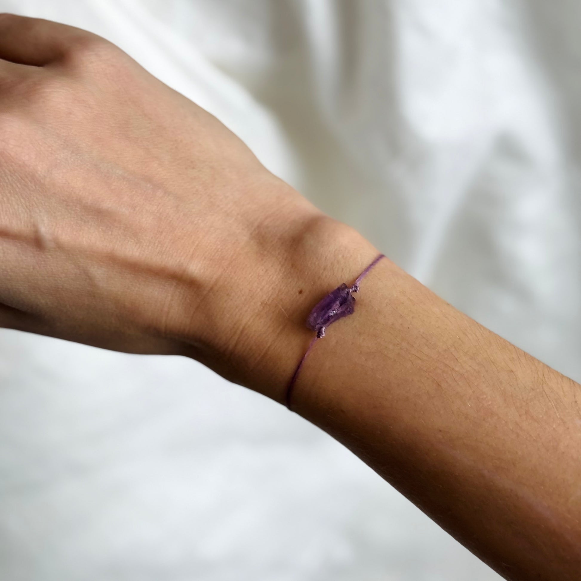 Náramek se surovým AMETYSTEM na šňůrce
