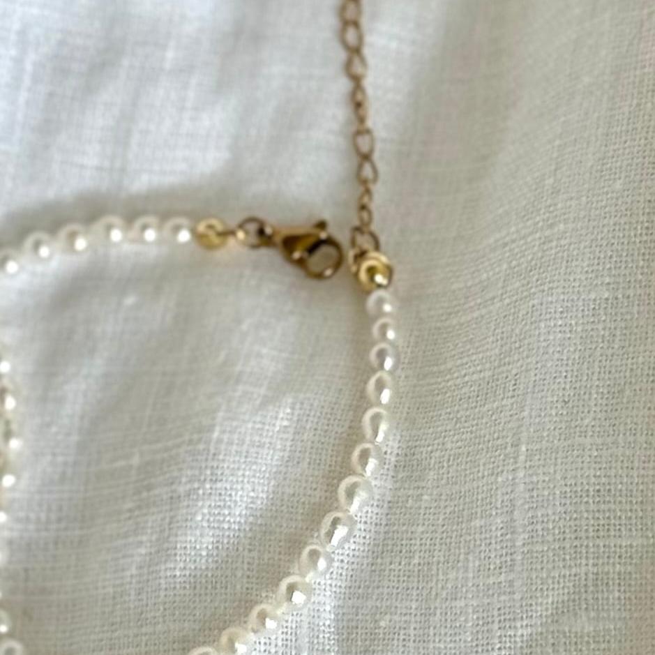 Je vytvořen z drobných téměř kulatých pravých říčních perel o velikosti cca 3-4 mm.
