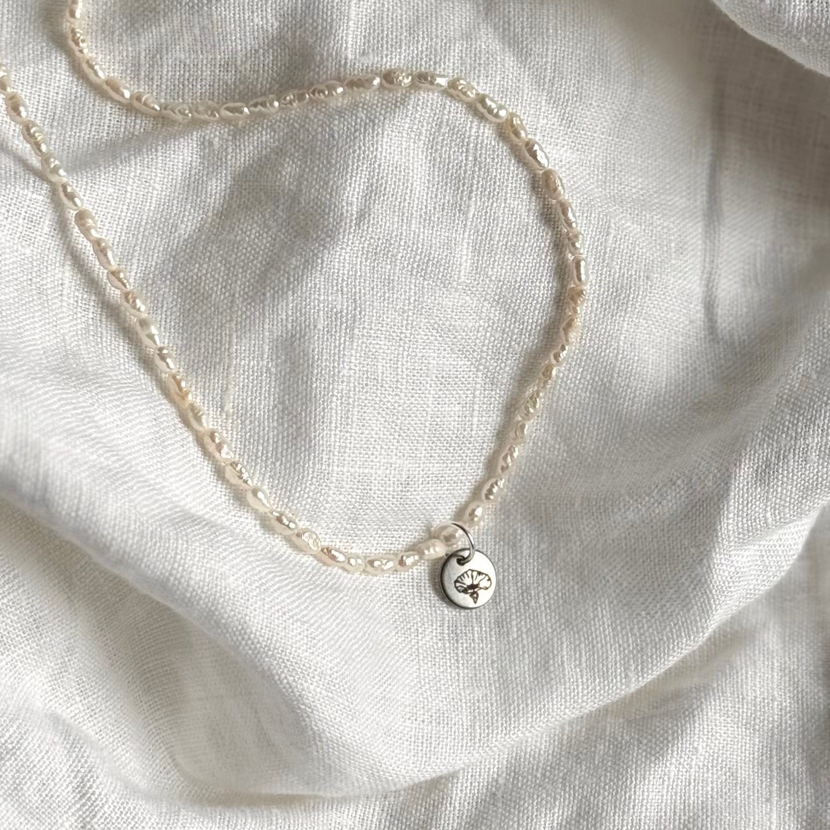 Drobné pravé říční perličky (2-4 mm) tvoří nádherný základ pro medailonek či až pět medailonků (1 cm), na které vám vygravírujeme květiny měsíce narození vašich nejbližších. Každý měsíc v roce má svou květinu – symboliku, kterou si můžete nést stále u sebe.