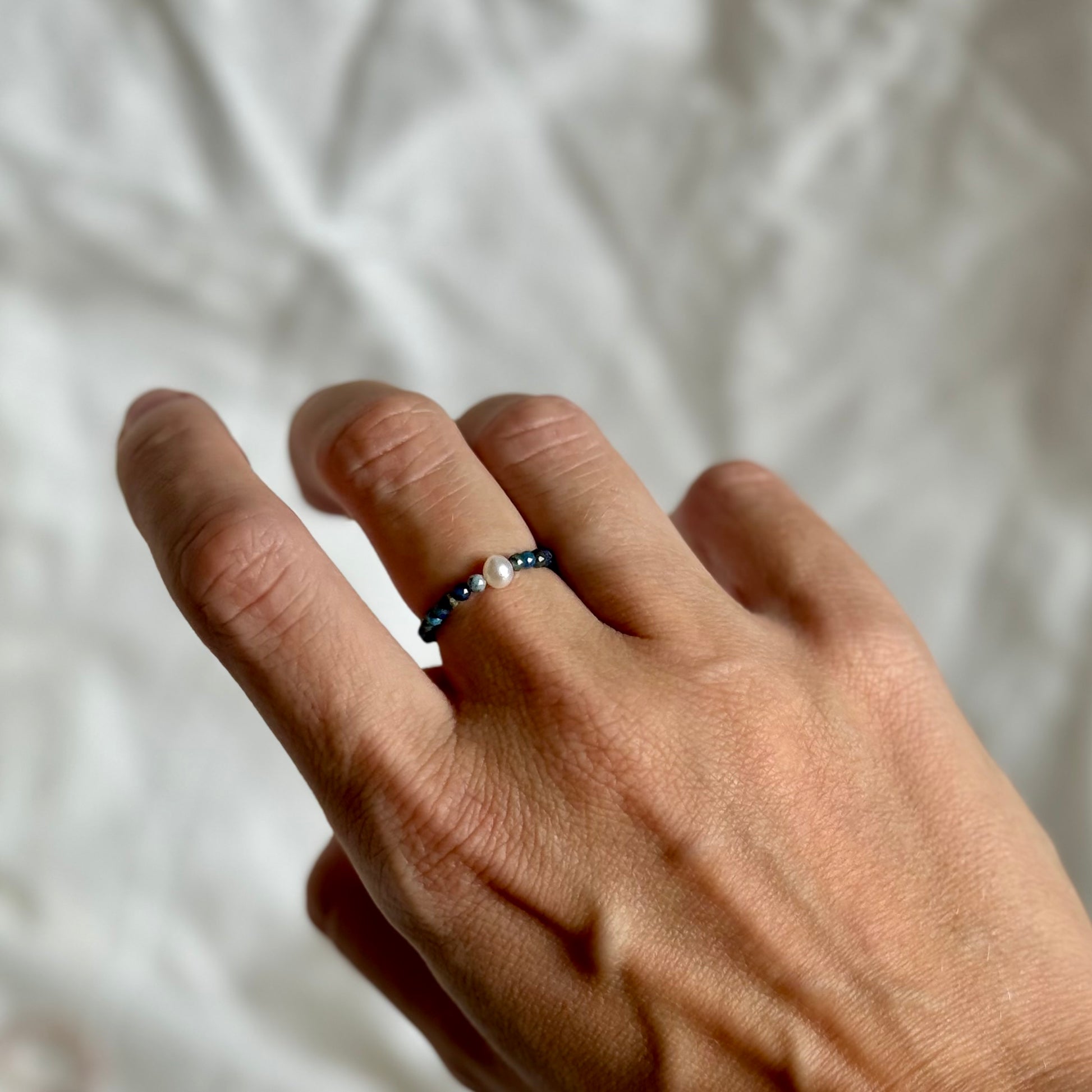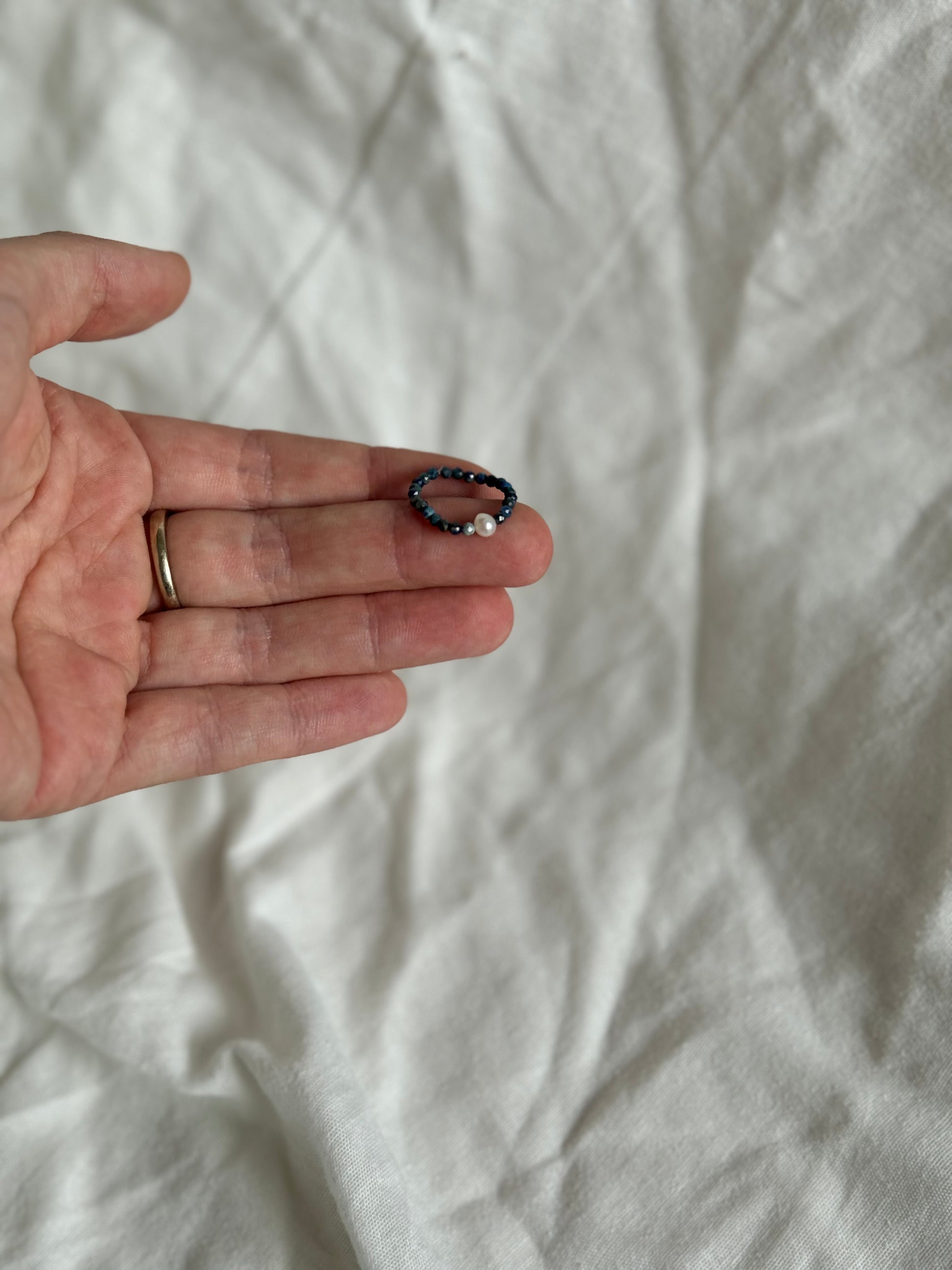 Lapis lazuli přináší klid a rovnováhu, zatímco perla dodává prstýnku jemnou nadčasovou eleganci.