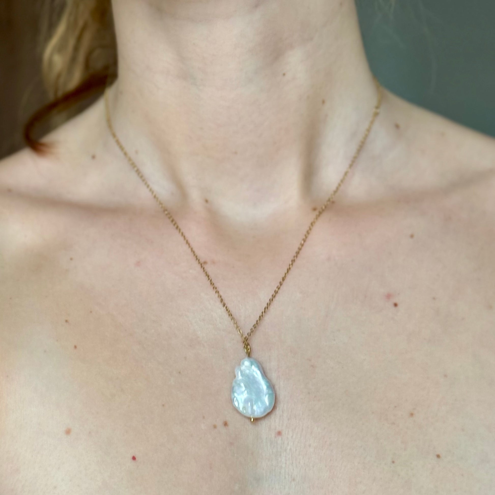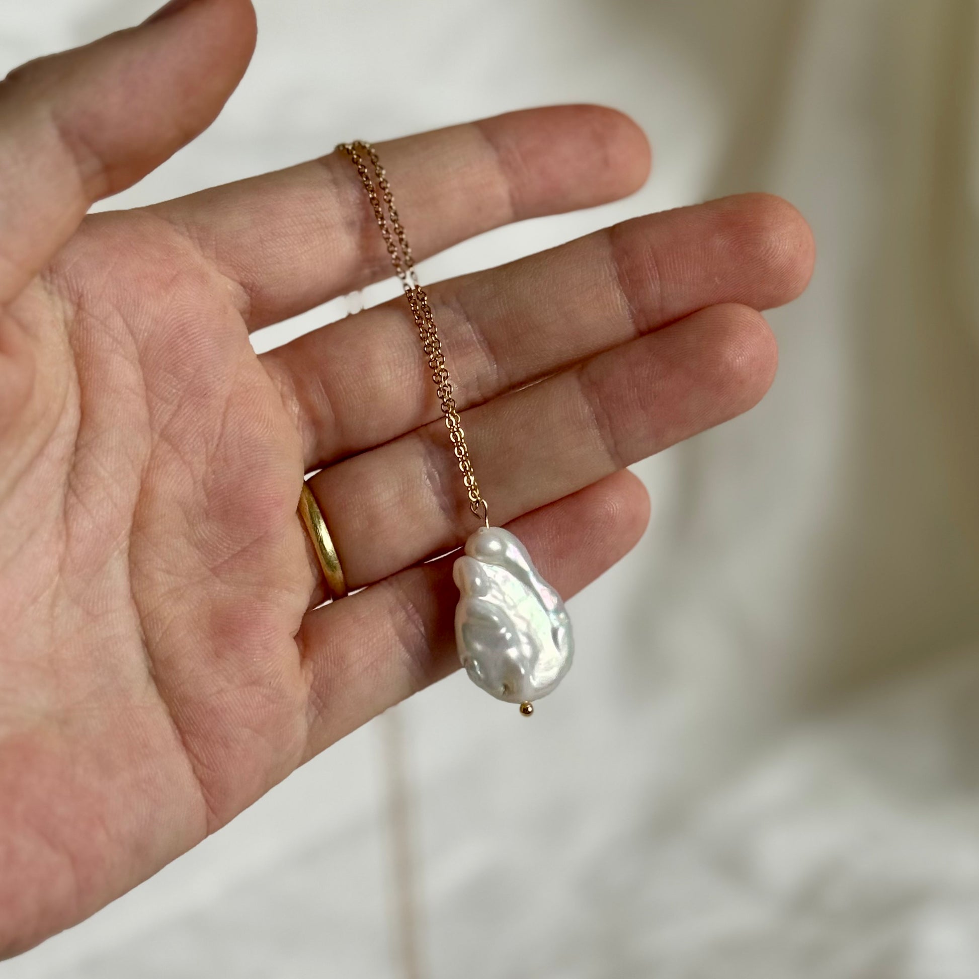 Řetízek s nádhernou barokní (nepravidelnou) perlou o velikosti až 2,5 cm.
