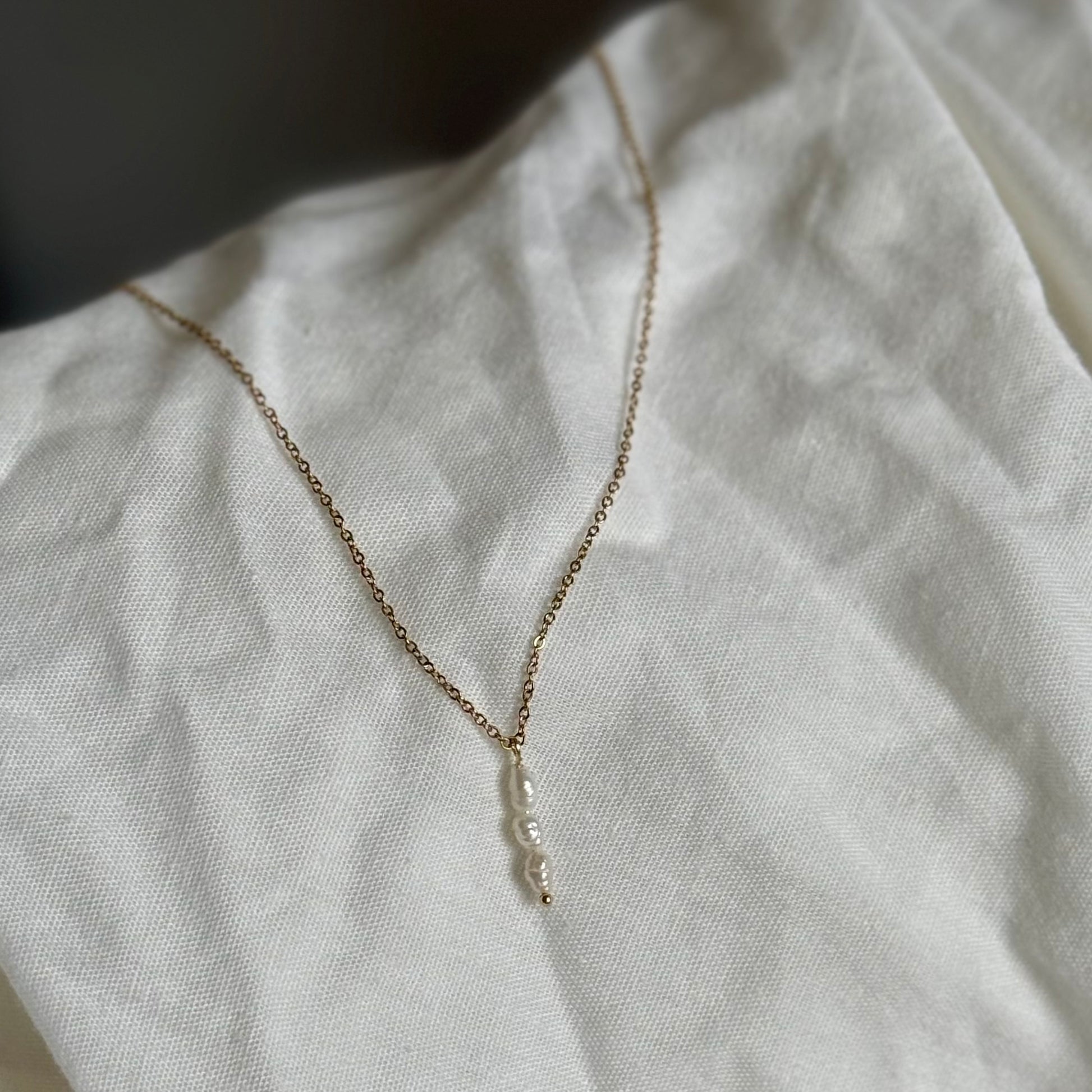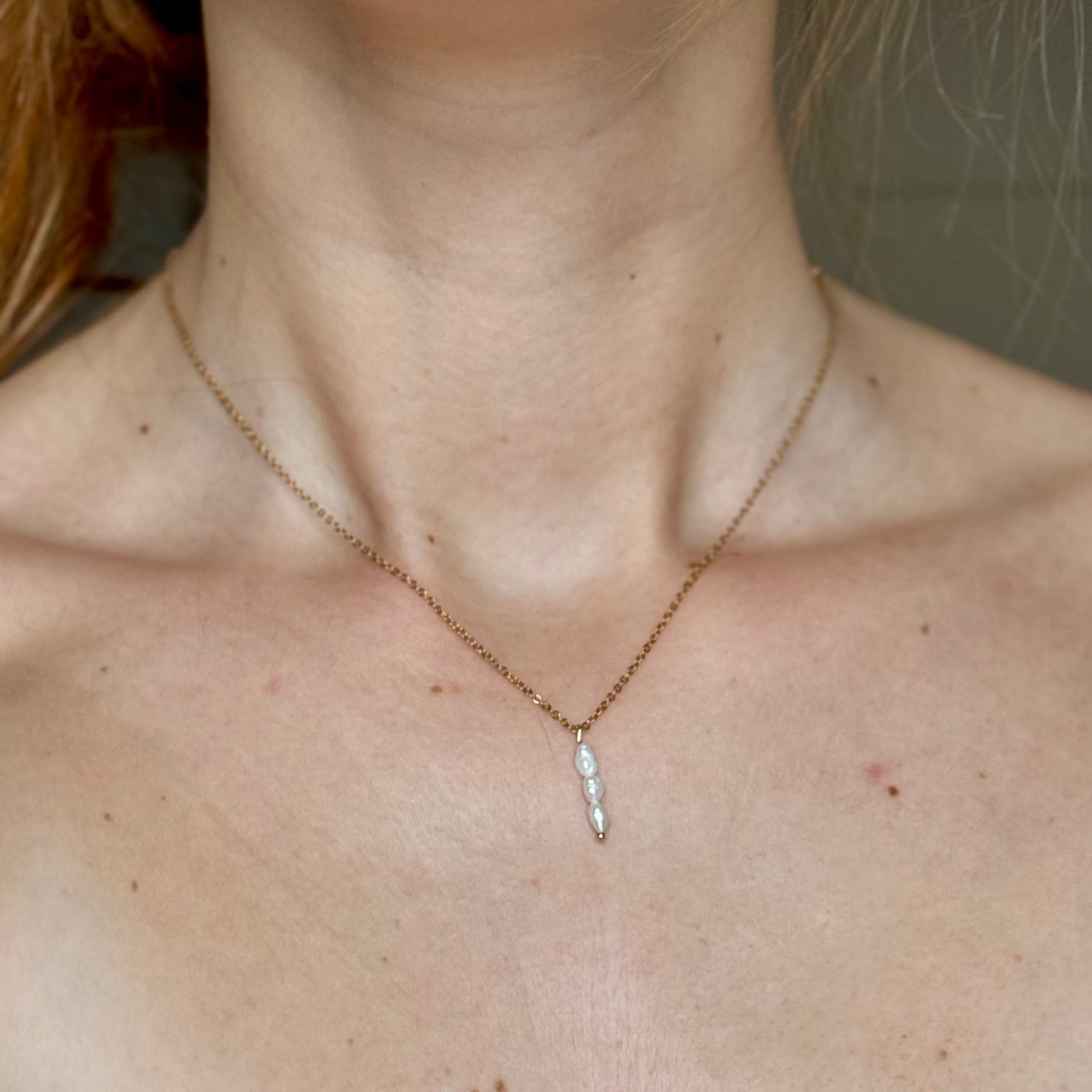 Řetízek s jemným, ale unikátním přívěskem se třemi mini perličkami.