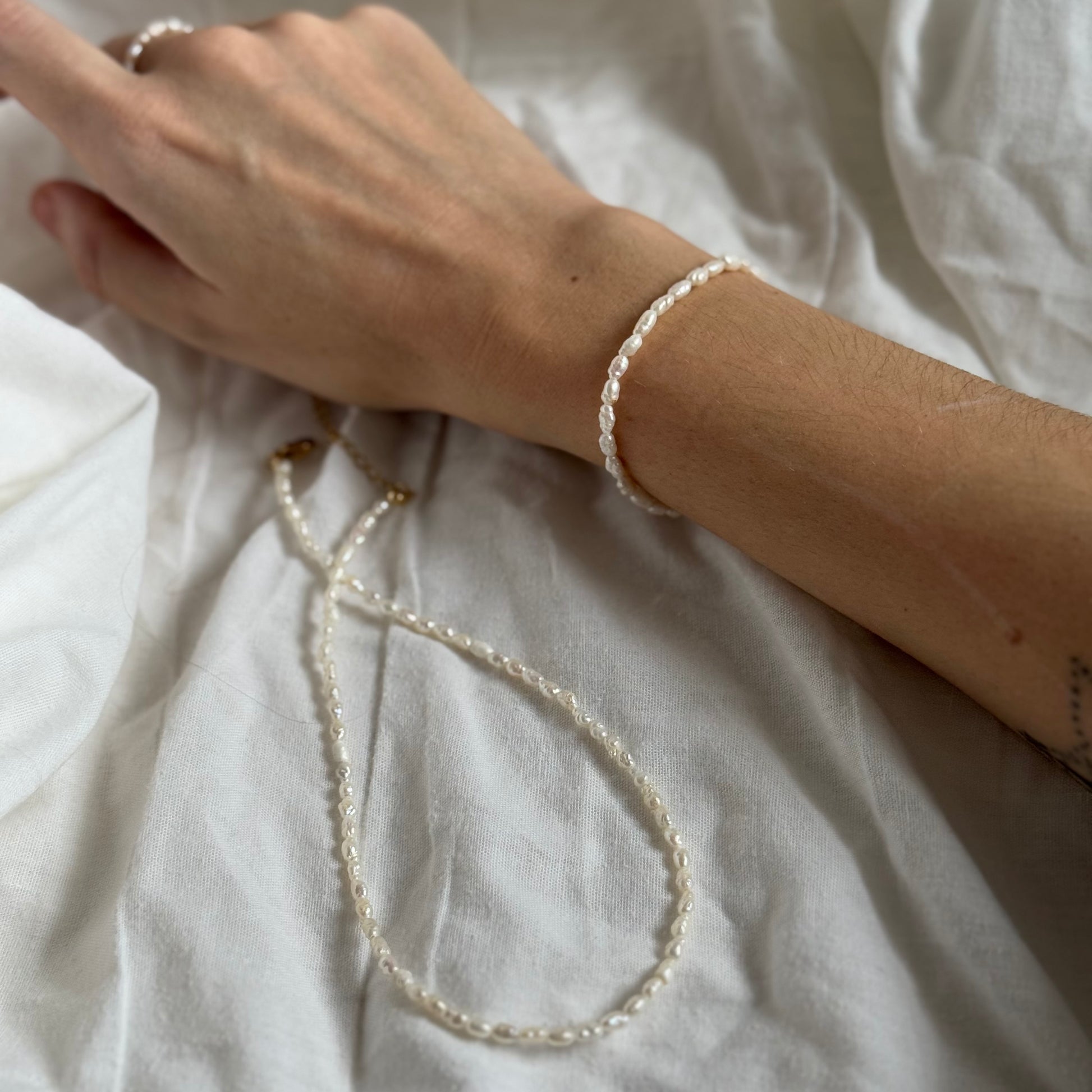 Náhrdelník a náramek Minis z drobných říčních perel o velikosti 2 mm je skvělou volbou pro každodenní nošení i speciální příležitosti.