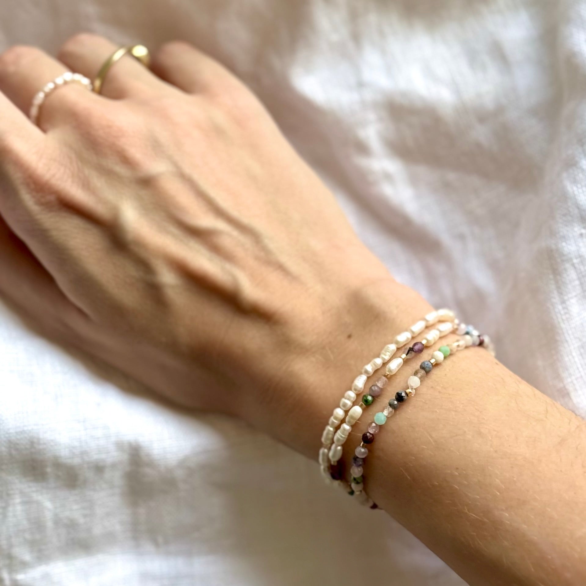 💫 Perlový náramek – sladkovodní perly (2–3 mm) s přirozeným perleťovým leskem. Jemná elegance, která nikdy neomrzí.