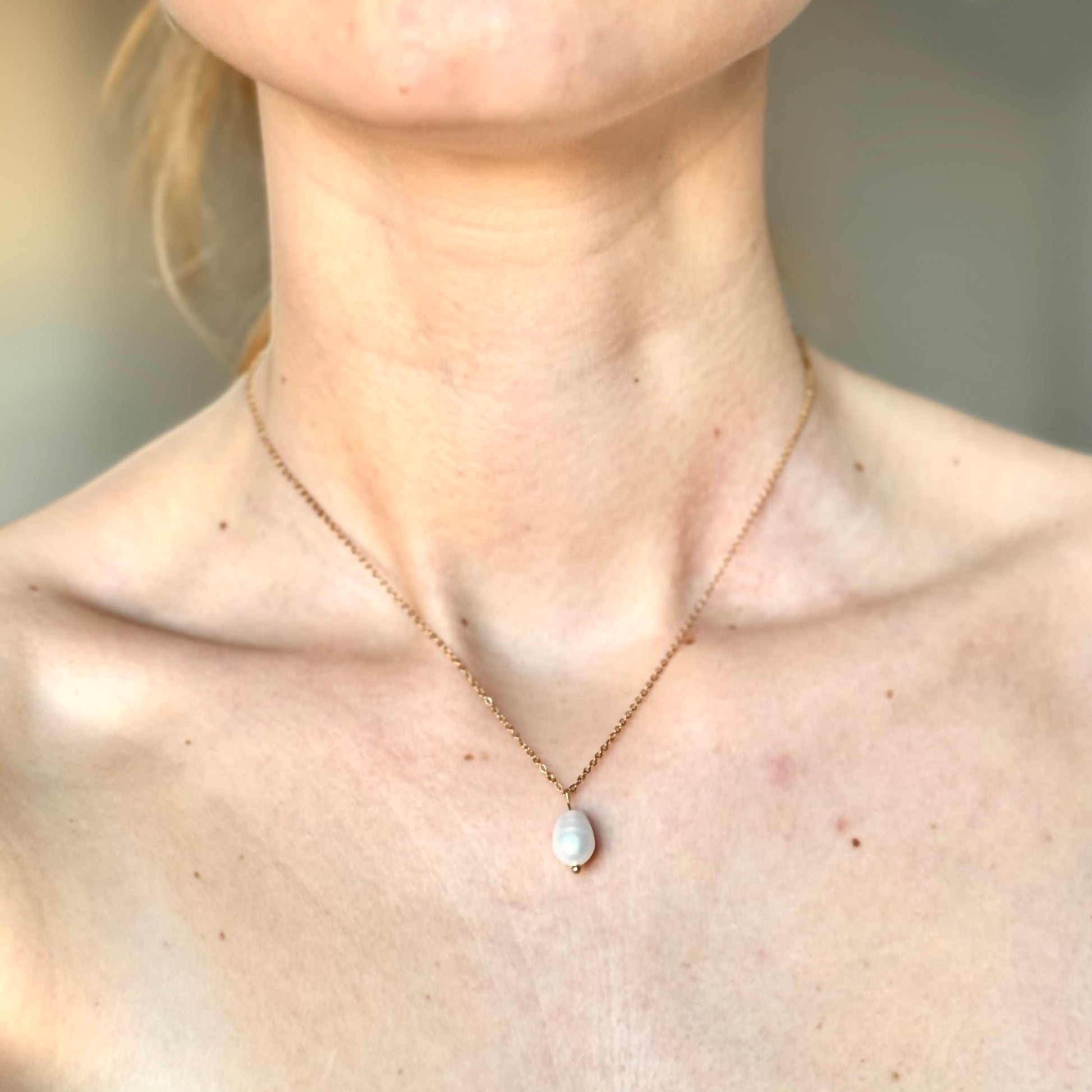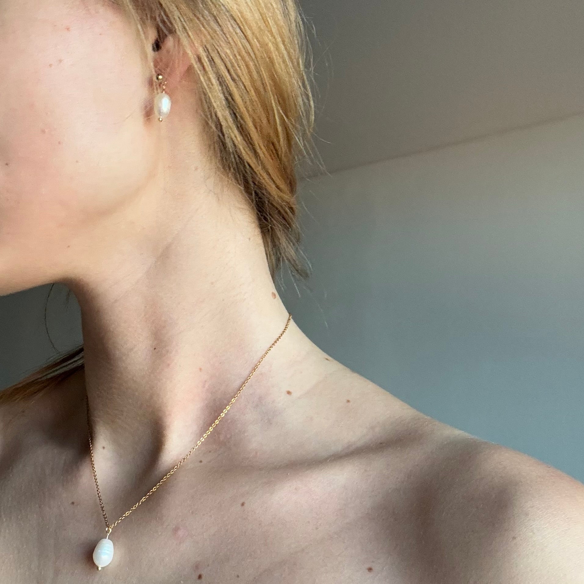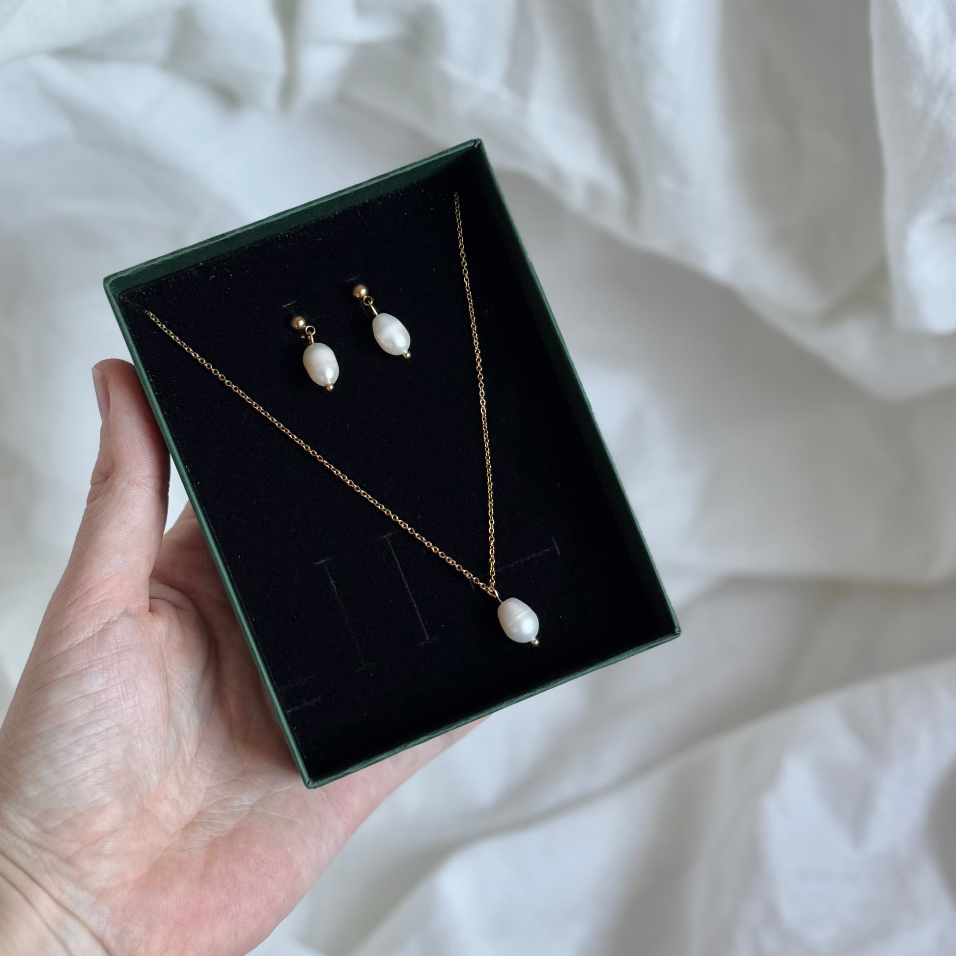 Řetízek a náušnice s většími říčními perlami o velikosti 7-8 mm jsou skvělou volbou pro každodenní nošení i speciální příležitosti.