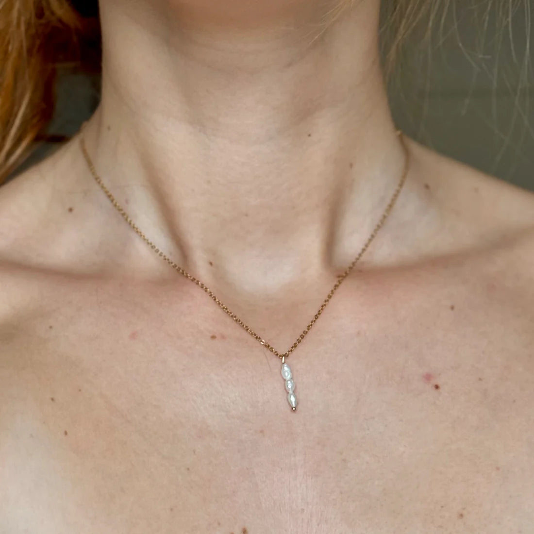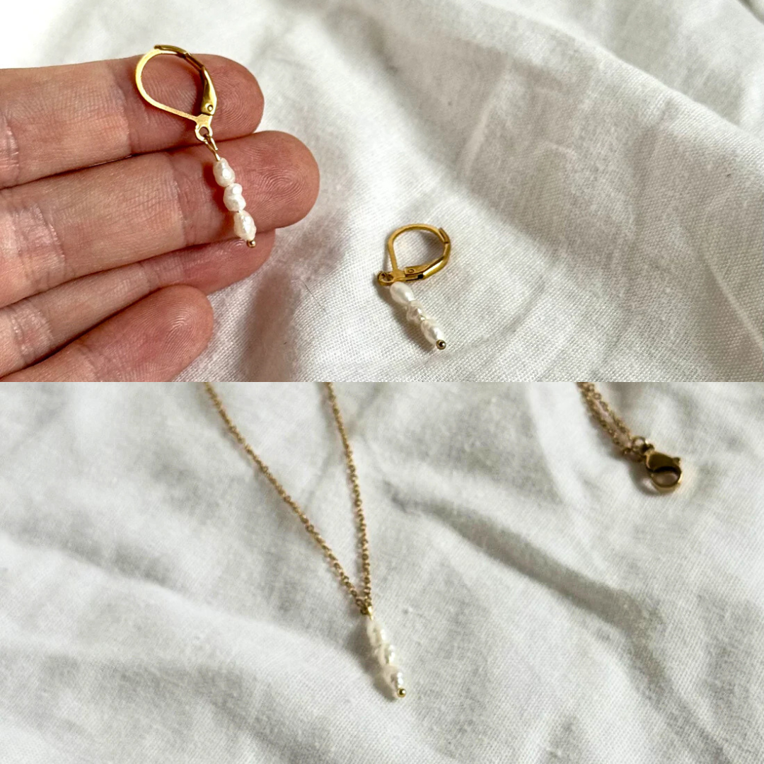 Řetízek a náušnice s drobnými říčními perlami o velikosti 2 mm jsou skvělou volbou pro každodenní nošení i speciální příležitosti.